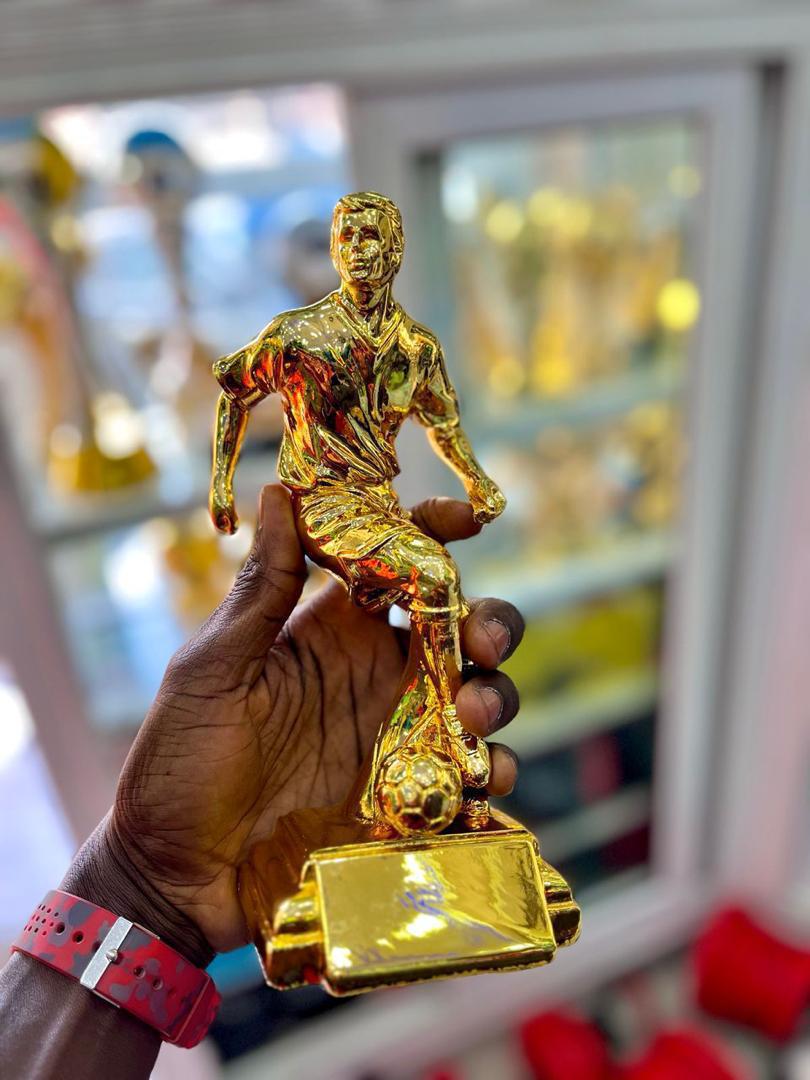 Trophée de football de haute qualité avec finition dorée brillante. Idéal pour les tournois de vacances, les Navétanes et les championnats scolaires au Sénégal.